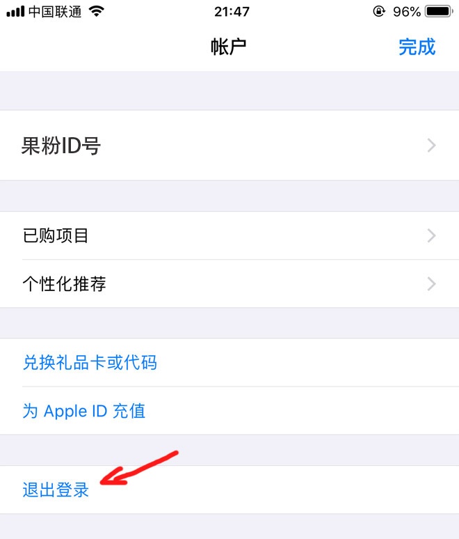 2:进入到“Appstore”软件后,点击右上角的小头像,然后将自己国内的ID账号退出登录